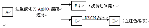 | A.A中一定有Fe3+ | B.C中一定有Fe3+ | C.B為AgI沉淀 | D.A一定為FeBr2溶液 |