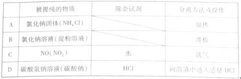 | | 待提純的物質(zhì) | 選用的試劑 | 操作方法 |