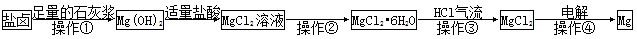 某工廠用提取粗鹽后的鹽鹵(主要成分為MgCl2)制備金屬鎂,其工藝流程如下,下列說法中,錯誤的是![]()