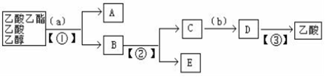 以下是分離乙酸乙酯、乙酸、乙醇的混合物的流程圖,圖中圓括號(hào)內(nèi)是適當(dāng)?shù)脑噭,方括?hào)內(nèi)是適當(dāng)?shù)姆蛛x方法,方框內(nèi)是有關(guān)物質(zhì)的名稱。下列說法正確的是( )![]()