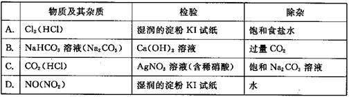 下列物質(zhì)中的雜質(zhì)(括號內(nèi)為雜質(zhì))的檢驗、除雜的試劑或方法正確的是 ( )![]()