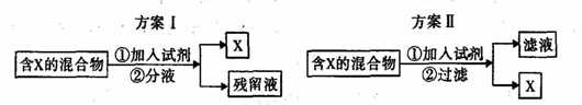 | A.若含X的混合物為混有少量氯氣的液溴,可通過方案I進(jìn)行分離,加入試劑為適量溴化鈉溶液 |