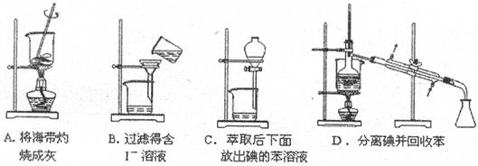 從海帶中提取碘的實(shí)驗(yàn)過(guò)程中,涉及到下列操作,其中正確的是![]()