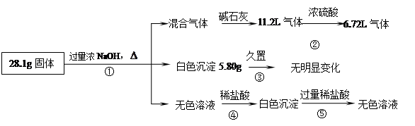 (10分)某固體混合物可能由Al、(NH4)2SO4、MgCl2、AlCl3、FeCl2中的一種或幾種組成,現(xiàn)對該混合物作如下實(shí)驗(yàn),所得現(xiàn)象和有關(guān)數(shù)據(jù)如圖所示(氣體體積數(shù)據(jù)已換算成標(biāo)準(zhǔn)狀況下的體積):![]()