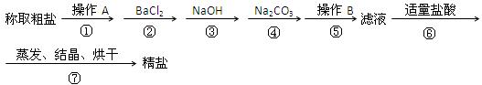 (1)第①步中,操作A是 ,第⑤步中,操作B ;
