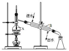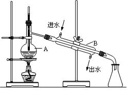 (6分)如圖為實驗室制取蒸餾水的裝置示意圖,根據(jù)圖示回答下列問題。![]()