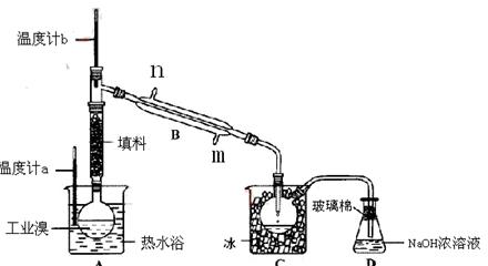 某化學(xué)研究性學(xué)習(xí)小組為了解從工業(yè)溴中提純溴的方法,查閱了有關(guān)資料,Br2的沸點為59℃。微溶于水,有毒性和強腐蝕性。他們參觀生產(chǎn)過程后,繪制了如下裝置簡圖。![]()