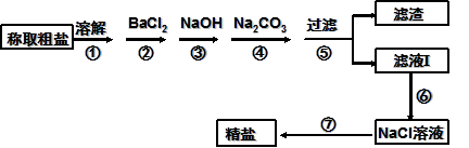 (12分)某校探究學(xué)習(xí)小組同學(xué)用含有少量雜質(zhì)(主要為少量泥沙、CaCl2、MgCl2、Na2SO4等)的粗鹽制取“化學(xué)純”級的NaCl,實驗前他們設(shè)計了如下方案(框圖)。![]()