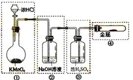 已知KMnO4與濃HCl在常溫下反應就能產(chǎn)生Cl2。若用右圖所示裝置來制備純凈、干燥的氯氣,并試驗它與金屬的反應。每個虛線框表示一個單元裝置,其中錯誤的是 ![]()