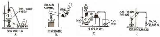 | A.利用①可以制取乙烯 | B.裝置②可配制一定物質(zhì)的量濃度的稀硫酸 |