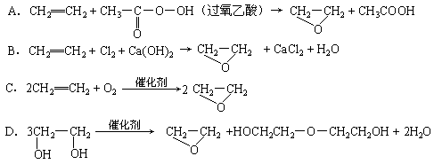 綠色化學(xué)提倡化工生產(chǎn)應(yīng)提高原子利用率。原子利用率表示目標(biāo)產(chǎn)物的質(zhì)量與生成物總質(zhì)量之比。在下列制備環(huán)氧乙烷的反應(yīng)中,原子利用率最高的是( )![]()