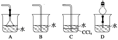 已知NH3難溶于CCl4,如下圖所示,下列裝置中,不宜用于吸收氨氣的是 ( )![]()