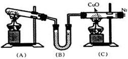 實(shí)驗(yàn)室用下圖所示裝置通過制取NH3再和CuO 反應(yīng)制得N2,同時(shí)還原CuO 得Cu 。![]()