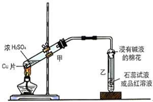 (3)裝置乙的試管口部放有一團(tuán)浸有堿液的棉花,棉花中通常是浸有飽和碳酸鈉溶液,寫出棉花中發(fā)生反應(yīng)的化學(xué)方程式 。