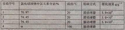 [實驗三]一定條件下,氯化鎂與四氯化鈦的混合物可作烯烴聚合反應(yīng)的催化劑。為了探究溫度、氯化鎂固體的含水量以及粉碎方式對該催化劑催化效果的影響,設(shè)計如下對比實驗:![]()