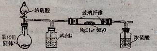 (10分)無水氯化鎂是制備某種催化劑的中間體。某研究性學(xué)習(xí)小組設(shè)計實驗方案進(jìn)行制取無水氯化鎂等實驗。請?zhí)顚懴铝锌瞻住?br />[實驗一]利用下圖實驗裝置(夾持和加熱裝置省略),在HCl氣流中小心加熱MgCl2·6H2O晶體制取無水氯化鎂(無水氯化鎂易吸水)。燒瓶中發(fā)生的反應(yīng)為: