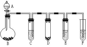 (12分)“化學(xué)多米諾實驗”是利用化學(xué)反應(yīng)中氣體產(chǎn)生的壓力,使多個化學(xué)反應(yīng)依次發(fā)生。下圖所示就是一個“化學(xué)多米諾實驗”,其中A~F裝置中分別盛放的物質(zhì)為: