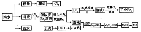(2)海水的綜合利用可以制備金屬鈉和鎂,其流程如下圖所示:![]()