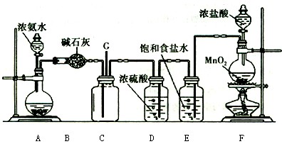 (16分)某學(xué)生利用以下裝置探究氯氣與氨氣之間的反應(yīng)。其中A、F分別為氨氣和氯氣的發(fā)生裝置,C為純凈干燥的氯氣與氨氣反應(yīng)的裝置。![]()