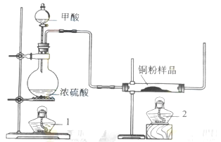 (11分)現(xiàn)擬用下圖所示裝置(尾氣處理部分略)來制取一氧化碳,并用以測定某銅粉樣品(混有CuO粉末)中金屬銅的含量。![]()