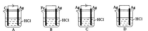 2AgCl + H2↑能進(jìn)行,設(shè)計(jì)了下列四個(gè)實(shí)驗(yàn),如下圖所示,你認(rèn)為可行的方案是![]()