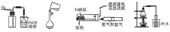 | A.收集氯氣 | B.轉(zhuǎn)移溶液 | C.模擬工業(yè)制備并檢驗(yàn)氨氣 | D.用海水制少量蒸餾水 |