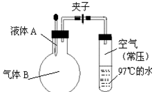 如圖所示,夾子開始處于關(guān)閉狀態(tài),將液體A滴入燒瓶與氣體B充分反應(yīng),打開夾子,可發(fā)現(xiàn)試管內(nèi)的水立刻沸騰了,則液體A和氣體B的組合不可能是![]()