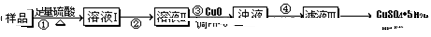 實驗室用含有雜質(zhì)(FeO、Fe2O3)的廢CuO制備膽礬晶體經(jīng)歷下列過程(Fe3+在pH=5時已完全沉淀):![]()