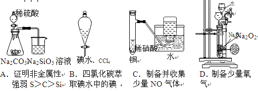 | C | 分別用測(cè)定常溫下0.1 mol·L--1 Na2SiO3和Na2CO3的PH | PH:Na2SiO3﹥Na2CO3 | 非金屬性Si﹥C |