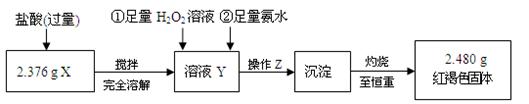 某研究性學(xué)習(xí)小組在CO還原Fe2O3的實(shí)驗(yàn)中,用磁鐵吸出生成的黑色粉末X,他們認(rèn)為X不一定是Fe,若溫度不均時(shí)會(huì)生成Fe3O4,也能被磁鐵吸引。為了探究X的組成,他們進(jìn)行了如下實(shí)驗(yàn)。