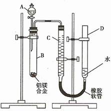 (14分)某學(xué)習(xí)小組用如下圖裝置測定鋁鎂合金中鋁的質(zhì)量分?jǐn)?shù)和鋁的相對原子質(zhì)量。![]()