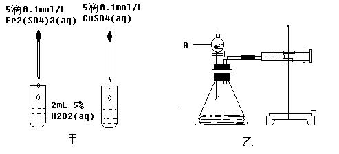 (10分)經(jīng)研究知Cu2+對H2O2分解也具有催化作用,為比較Fe3+和Cu2+對H2O2分解的催化效果,某研究小組的同學(xué)分別設(shè)計了如圖甲、乙所示的試驗;卮鹣铝袉栴}:![]()