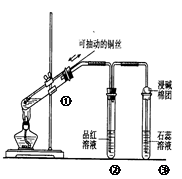 下列實(shí)驗(yàn)裝置是探究銅絲與過(guò)量濃硫酸的反應(yīng),下列敘述不正確的是![]()