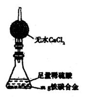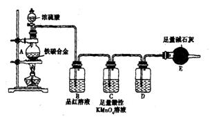 (4)待A中不再逸出氣體時,停止加熱,拆下E并稱重,E增重bg,則鐵碳合金中鐵的質(zhì)量分?jǐn)?shù)為 (寫表達(dá)式)。某同學(xué)認(rèn)為:依據(jù)此實驗測得的數(shù)據(jù),計算合金中鐵的質(zhì)量