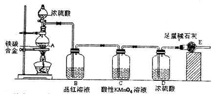 某;瘜W(xué)興趣小組設(shè)計了圖示實驗裝置(圖中省略了夾持儀器)來測定某鐵碳合金中鐵的質(zhì)量分數(shù).![]()