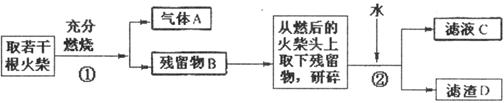 某興趣小組為驗證日常生活用的火柴頭上含有KClO3、MnO2、S,設(shè)計了以下實驗流程圖:![]()