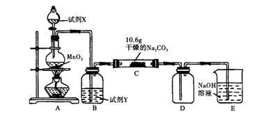 某化學活動小組設計如下圖所示(部分夾持裝置已略去)實驗裝置,以探究潮濕的Cl2與Na2CO3反應得到的固體物質(zhì)。![]()