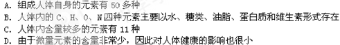 有關(guān)人體的組成元素的認(rèn)識錯誤的是 ( )![]()