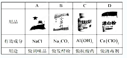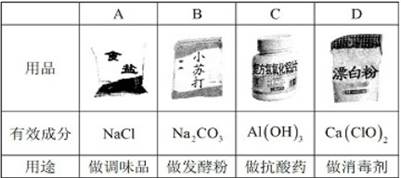 下列用品的有效成分及用途對(duì)應(yīng)錯(cuò)誤的是( )![]()