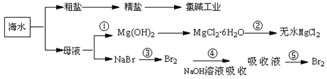 海洋中蘊(yùn)藏著豐富資源,對(duì)它的開發(fā)利用有利于緩解當(dāng)前資源緊張的困局,工業(yè)上從海水中提取的某些無機(jī)物的簡(jiǎn)易流程可以用下圖表示:![]()