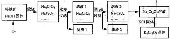 鉻鐵礦的主要成分可表示為FeO·Cr2O3,還含有SiO2、Al2O3等雜質(zhì),以鉻鐵礦為原料制備重鉻酸鉀(K2Cr2O7)的過程如下圖所示。
