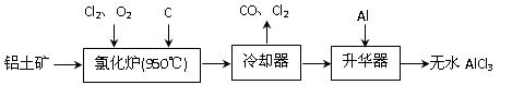 上由鋁土礦(A12O3、Fe2O3)為原料制備無水AlCl3的工藝流程如下。![]()