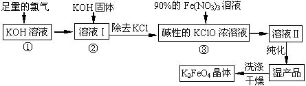 高鐵酸鉀(K2FeO4)是一種集氧化、吸附、絮凝于一體的新型多功能水處理劑。其生產(chǎn)工藝如下:![]()