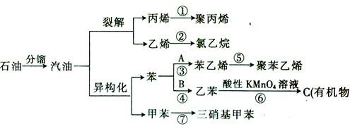 汽油不僅是重要的燃料,而且是重要的化工原料,可以通過汽油裂解得到化工原料如乙烯等,還可以在催化劑作用下改變汽油分子的結(jié)構(gòu),由鏈烴變?yōu)榉枷銦N,這種變化叫做異構(gòu)化。下面是以石油為原料發(fā)生的有機(jī)物的衍變關(guān)系圖:![]()