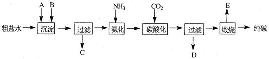 (1)粗鹽水加入沉淀劑A、B除雜質(zhì)(沉淀劑A來源于石灰窯廠),寫出A、B的化學(xué)式A ____________________ B _______________________