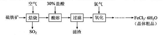 以硫鐵礦(主要成分為FeS2)為原料制備氯化鐵晶體(FeCl3·6H2O)的工藝流程如下:![]()