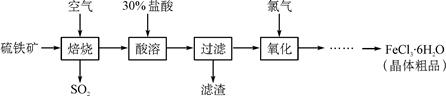 (15分)以硫鐵礦(主要成分為FeS2)為原料制備氯化鐵晶體(FeCl3·6H2O)的工藝流程如下: ![]()
