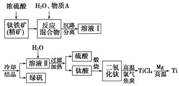 (2)上述生產(chǎn)流程中加入物質(zhì)A的目的是防止Fe2+被氧化,物質(zhì)A是________,上述制備TiO2的過程中,所得到的副產(chǎn)物和可回收利用的物質(zhì)分別是