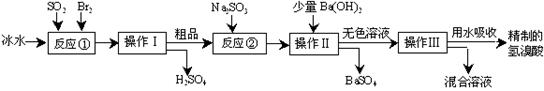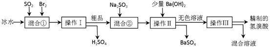(16分)氫溴酸在醫(yī)藥和石化工業(yè)上有廣泛用途。下圖是模擬工業(yè)制備氫溴酸粗品并精制流程:![]()