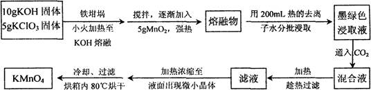 (2)KOH、KClO3、MnO2共熔制得綠色K2MnO4的化學方程式 ;